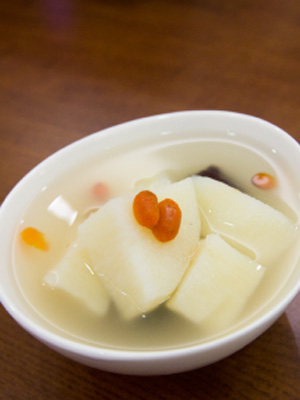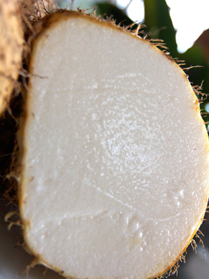 切開有機山藥,雪白的薯肉讓人眼睛一亮,黏液特多。料理方式可比照一般山藥,煮甜煮鹹都相當合適,燉雞湯不會給人鬆垮的口感,煮甜湯口感Q軟滑潤,讓人一碗接著一碗。
